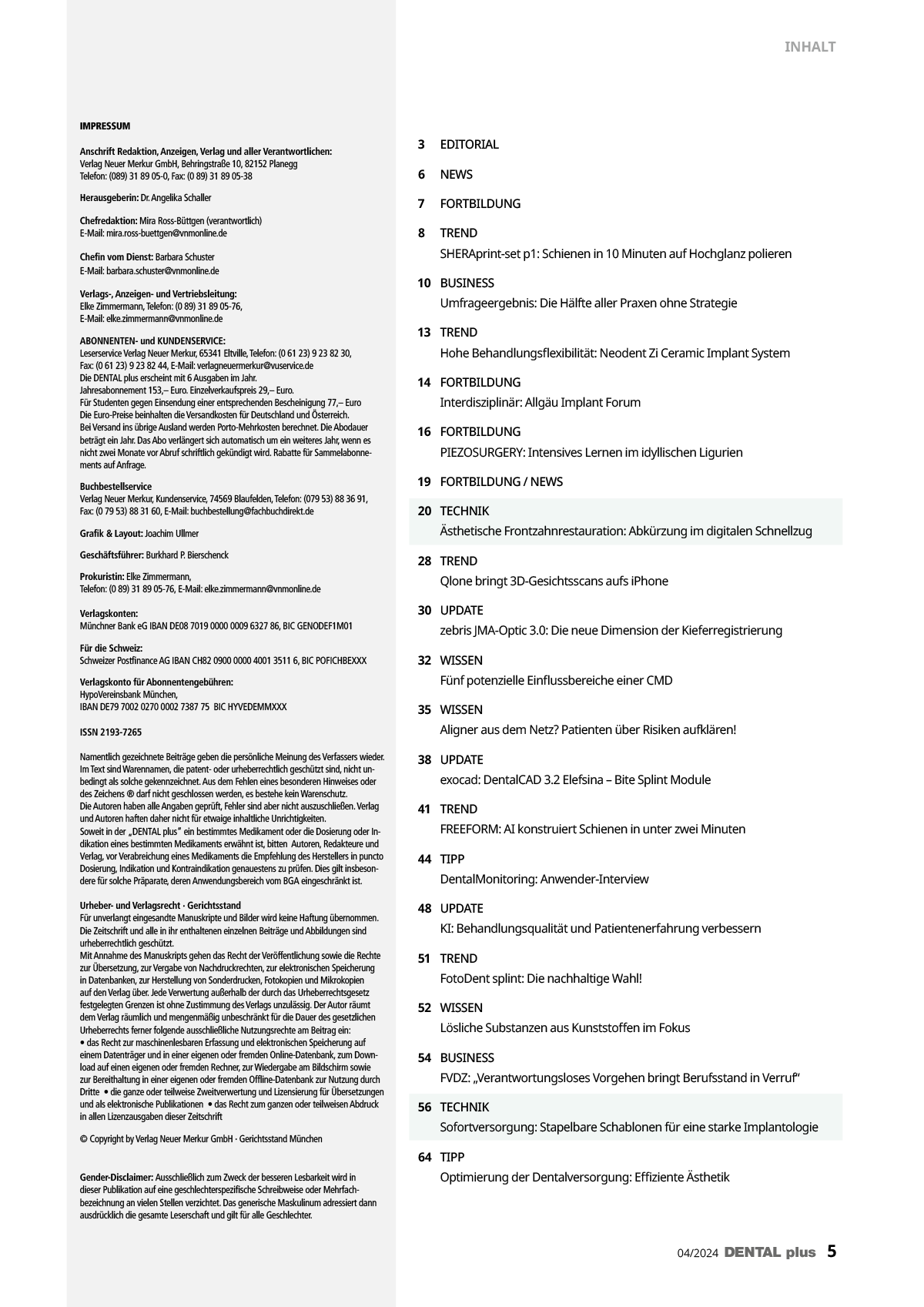 - 3D-Druck und Aligner: Produktnews, Veranstaltungshinweise und viele Tipps von Kollegen spiegeln das Schwerpunktthema dieser Ausgabe wider.